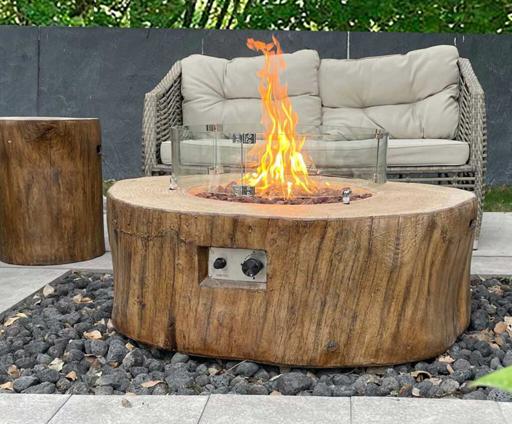 Wood-Look Fire Pit – Natural Timber Aesthetic with Concrete Durability