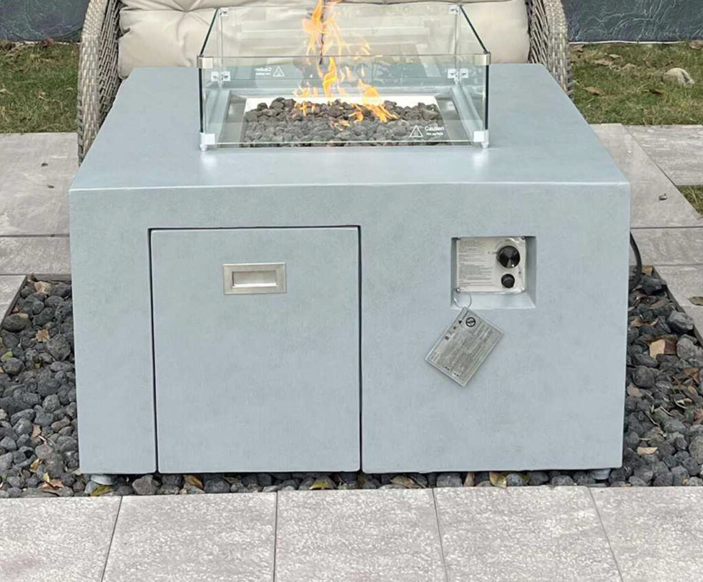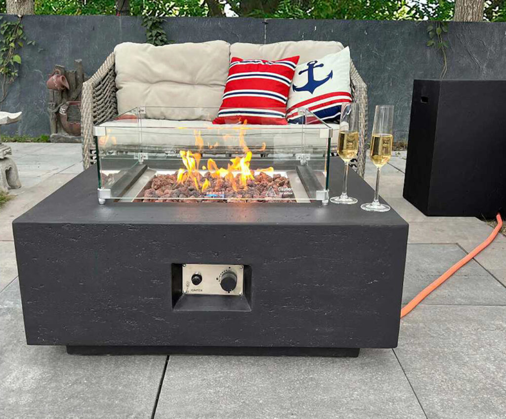 Modern Square Honed Concrete-Style Gas Fire Pit Table