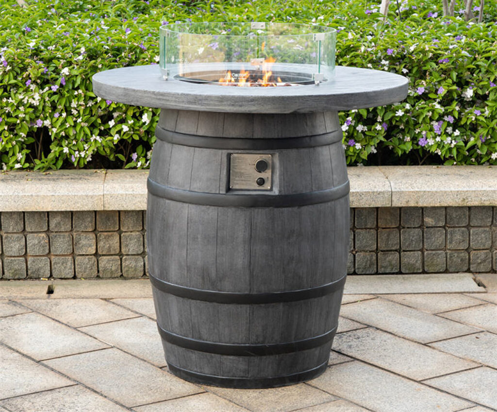 Rustic Oak Vineyard Wine Barrel Gas Fire Pit Table – Bar Height