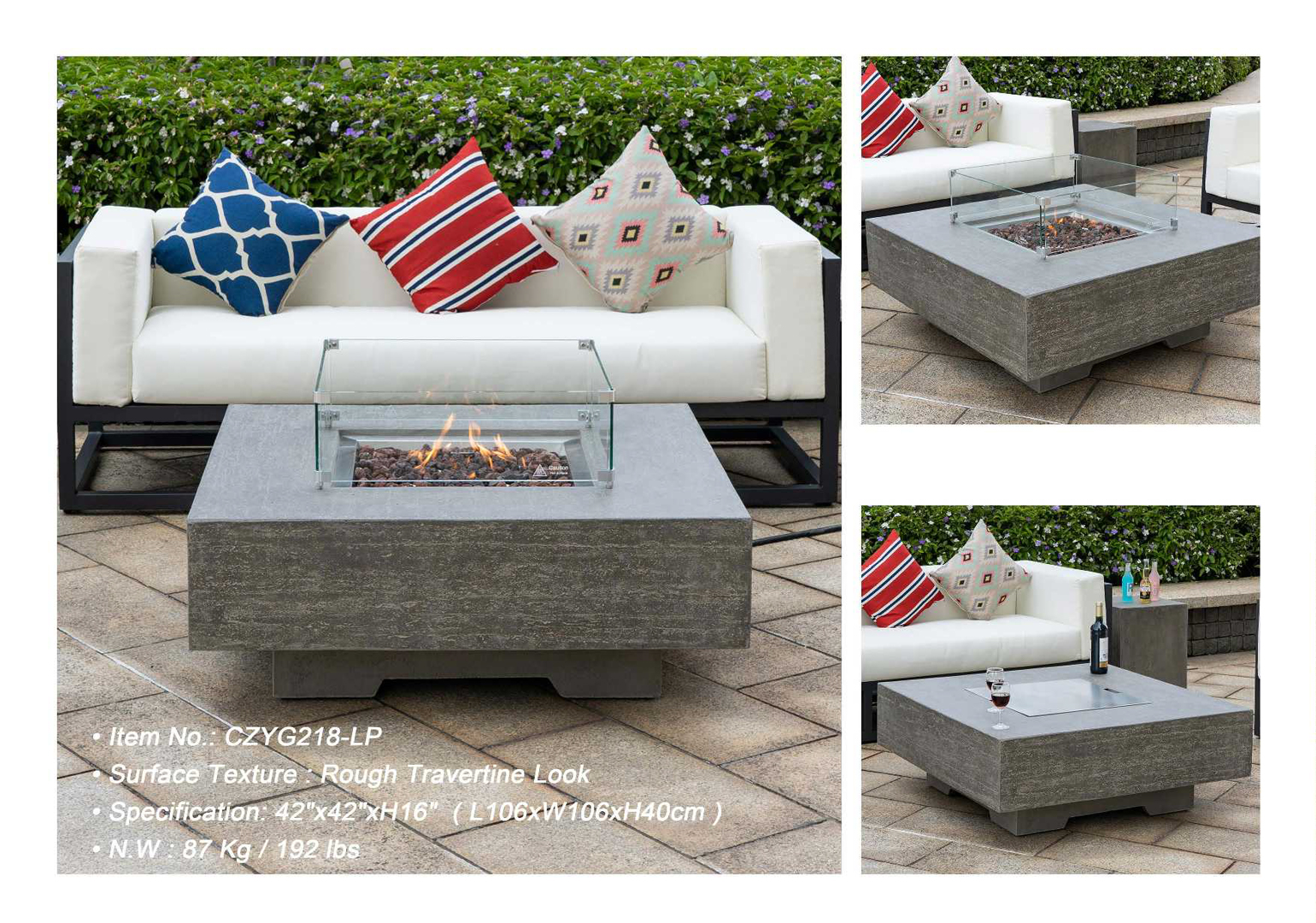 Architectural Square Travertine-Look Gas Fire Pit Table – CZYG218-LP