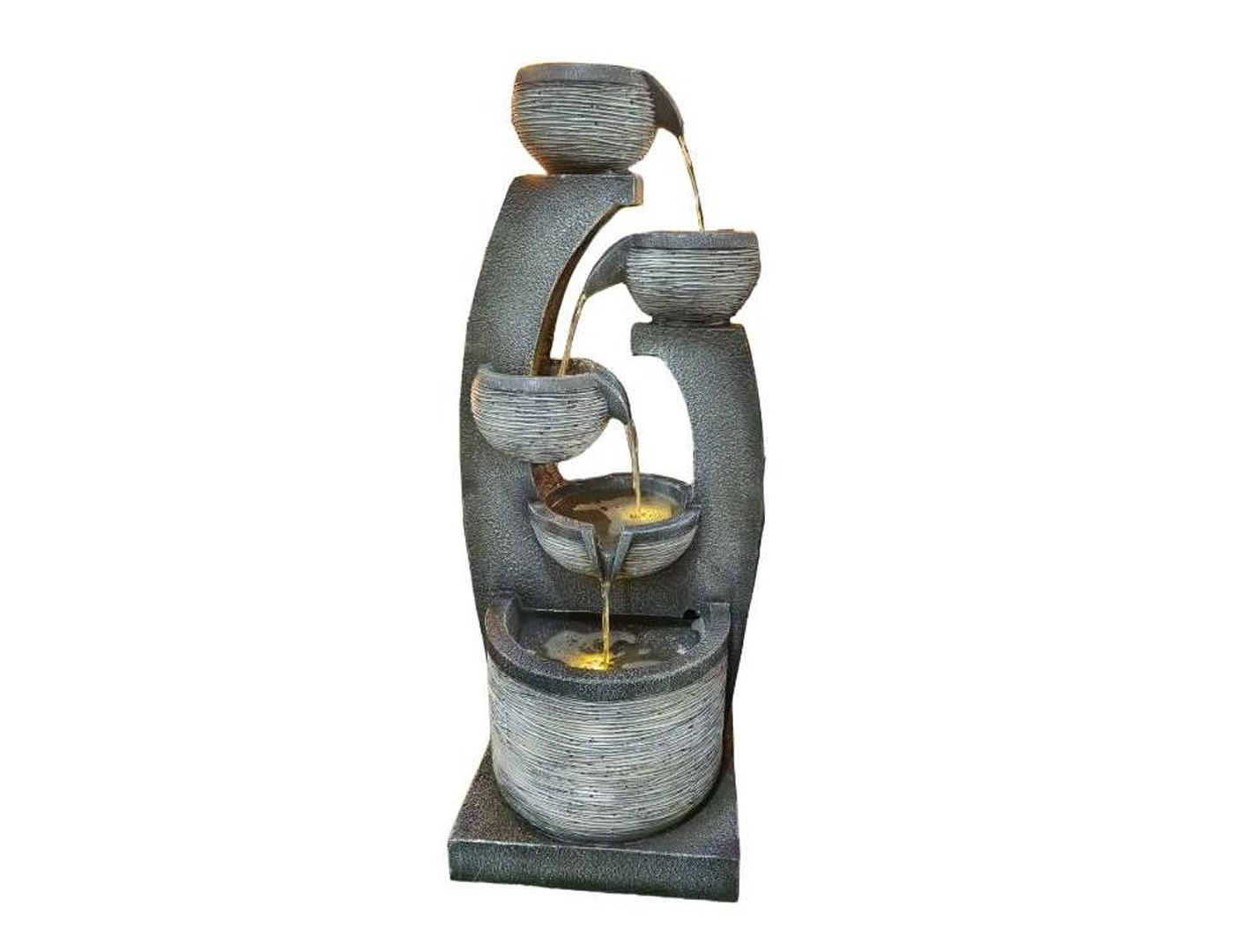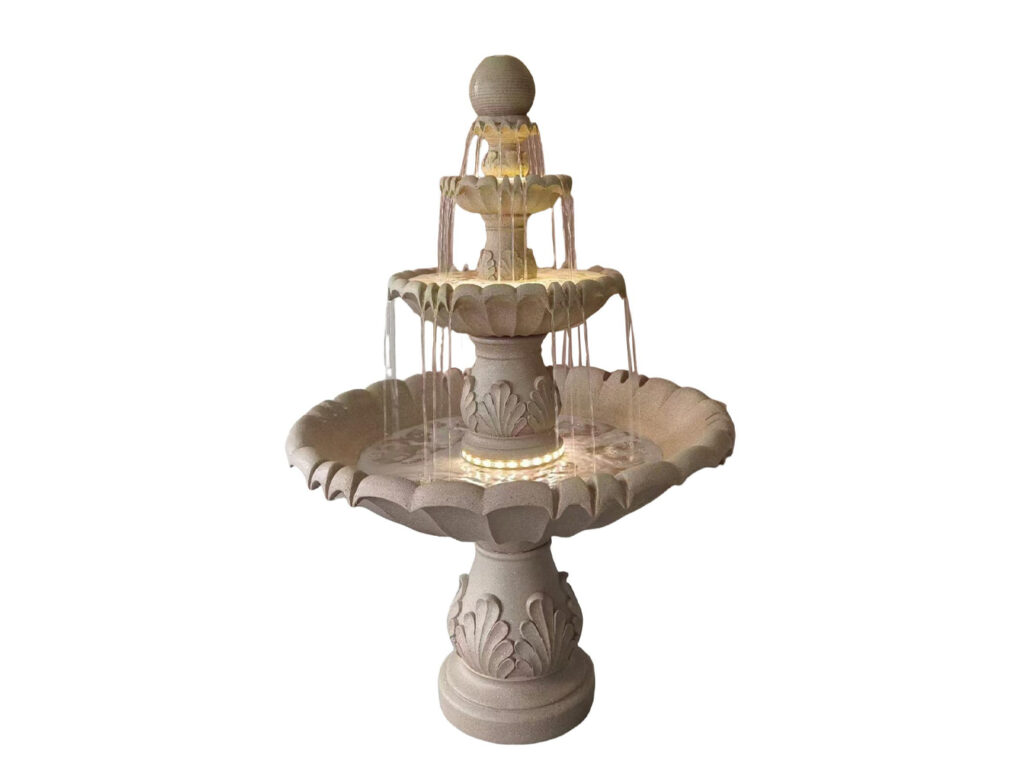 Water flows smoothly through the structure in a controlled and continuous cascade, creating a visually engaging effect that adds depth and texture to the fountain. At the same time, the gentle sound of flowing water contributes to a calm and inviting ambience, helping to transform outdoor areas into more relaxing and enjoyable spaces. This acoustic element is particularly valuable in residential settings, where it can soften background noise and enhance the sense of privacy.