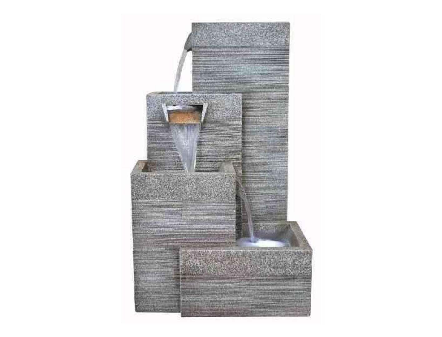 Water flows gently through the structure, cascading in a controlled and consistent manner that produces a soft, soothing sound. This gentle movement is one of the key benefits of a well-designed fountain, helping to create a more relaxed and inviting outdoor setting while also masking background noise in urban or suburban environments.