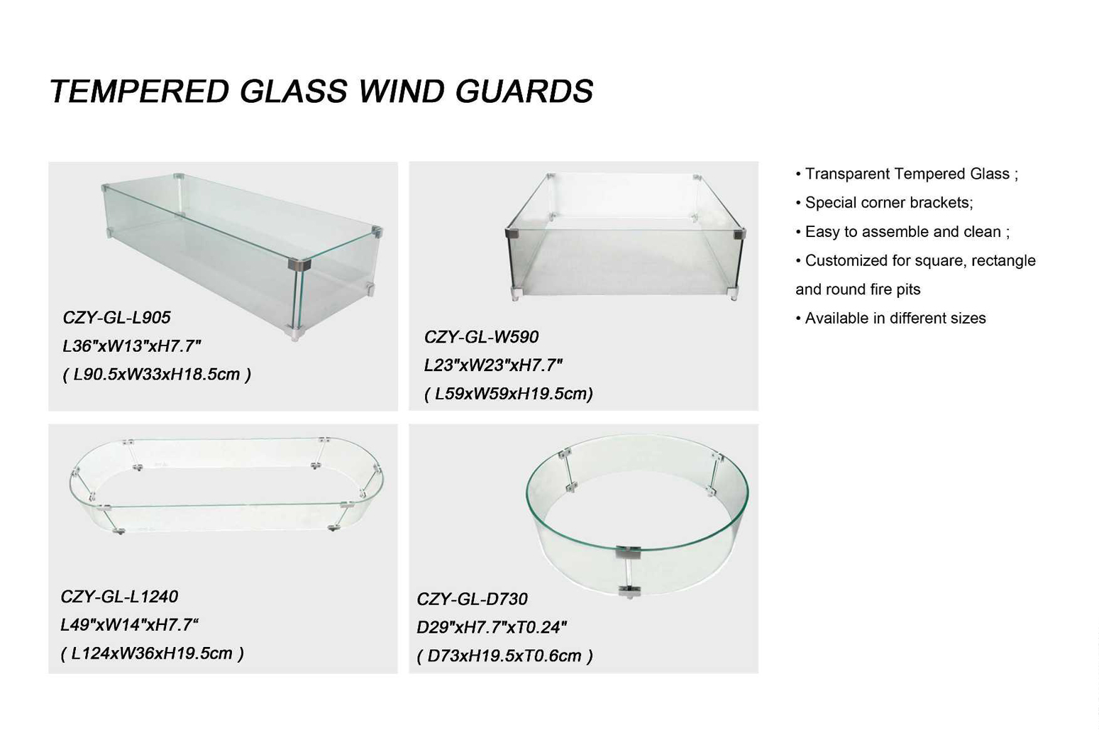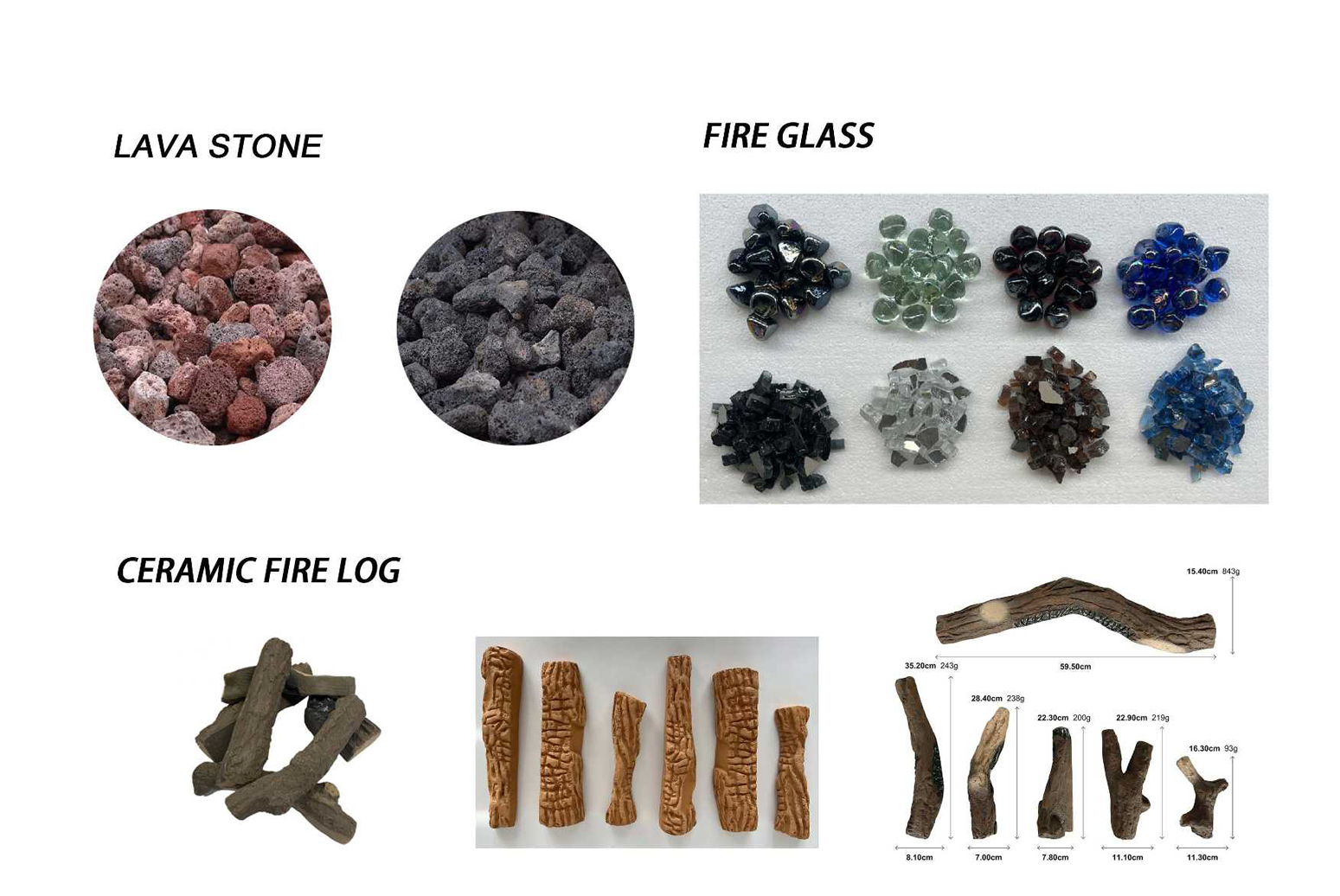 The inclusion of lava stone media enhances the natural appearance of the fire, while a glass wind guard ensures stability and safety. These features contribute to both the functionality and presentation of the unit.