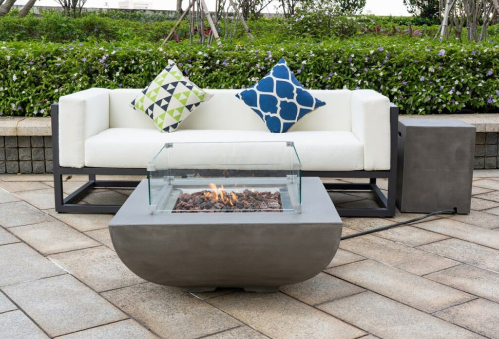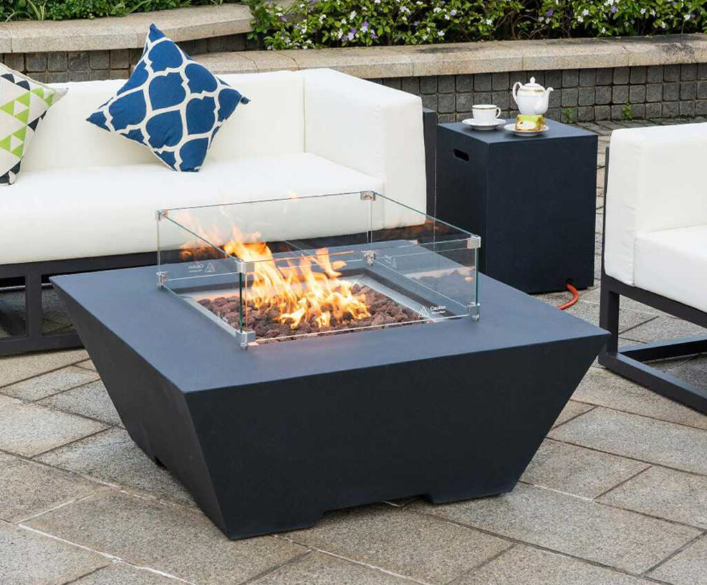 One of the greatest advantages of this gas fire pit over a traditional wood-burning fire is the sheer convenience. With a simple side-mounted control panel, you have instant ignition and precise control over the flame height. There is no need to source dry wood, no struggling with fire starters, and most importantly, no lingering smoke that irritates the eyes and clings to clothes. You get a clean, consistent burn every time. To ensure that your evening remains uninterrupted by coastal breezes or sudden gusts, the unit comes standard with a premium circular glass wind guard. This tempered glass barrier shields the flame, ensuring it stays steady and safe, while still allowing everyone to enjoy the mesmerising dance of the fire. The flames reflecting off the glass and the internal fire stones create a warm, golden ambiance that a standard heater simply cannot match.