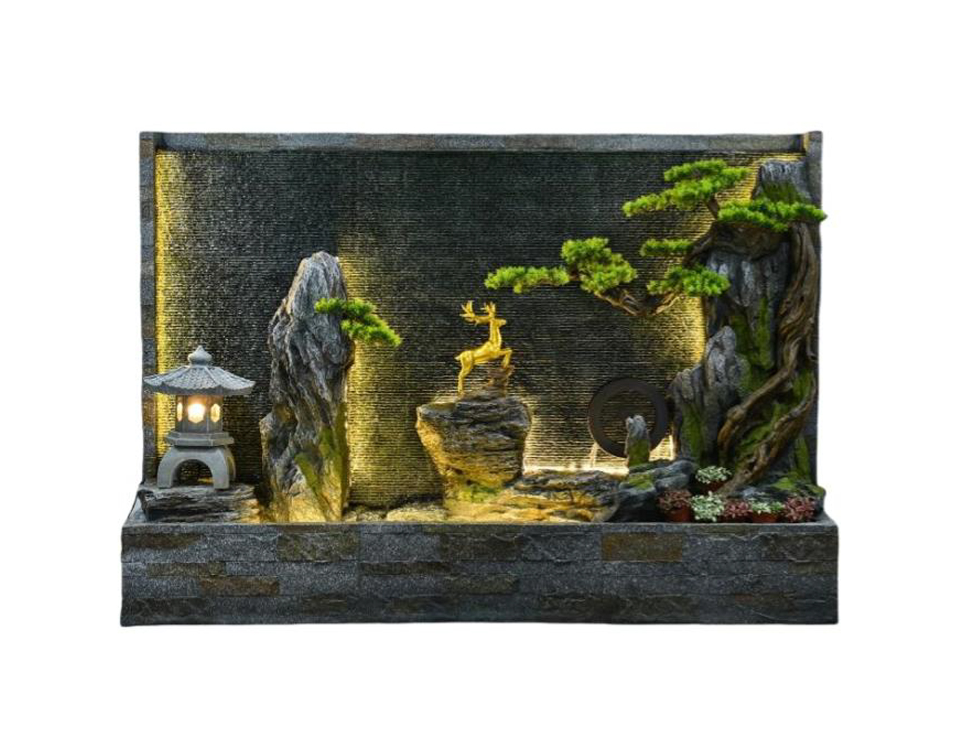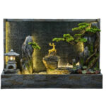 Water flows evenly across the front surface, creating a smooth and continuous cascade that enhances both visual appeal and acoustic ambience. The sound is soft and consistent, contributing to a relaxed atmosphere without becoming overpowering.